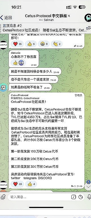 Cetus Protocol这个项目格局也太大了!各个群都看到在撒钱做宣传,第一阶段进官方电包群发uid就送92枚Ceuts代币(价值7U妥妥一顿猪脚饭),好像是送了一万多份吧,周围参与的小伙伴都陆续收到了,听他们说第一阶段官方空投了1,656,000枚Cetus代币,现在他们马上就要启动第二期的暖冬福利了,同时Cetus平台近期开启IDO,持有Cetus的会有IDO项目空投,赶紧联系你身边的小伙伴进电bao群:https://t.me/CetusProtocolGroup 去领取,又可以白嫖一顿不错的午餐!