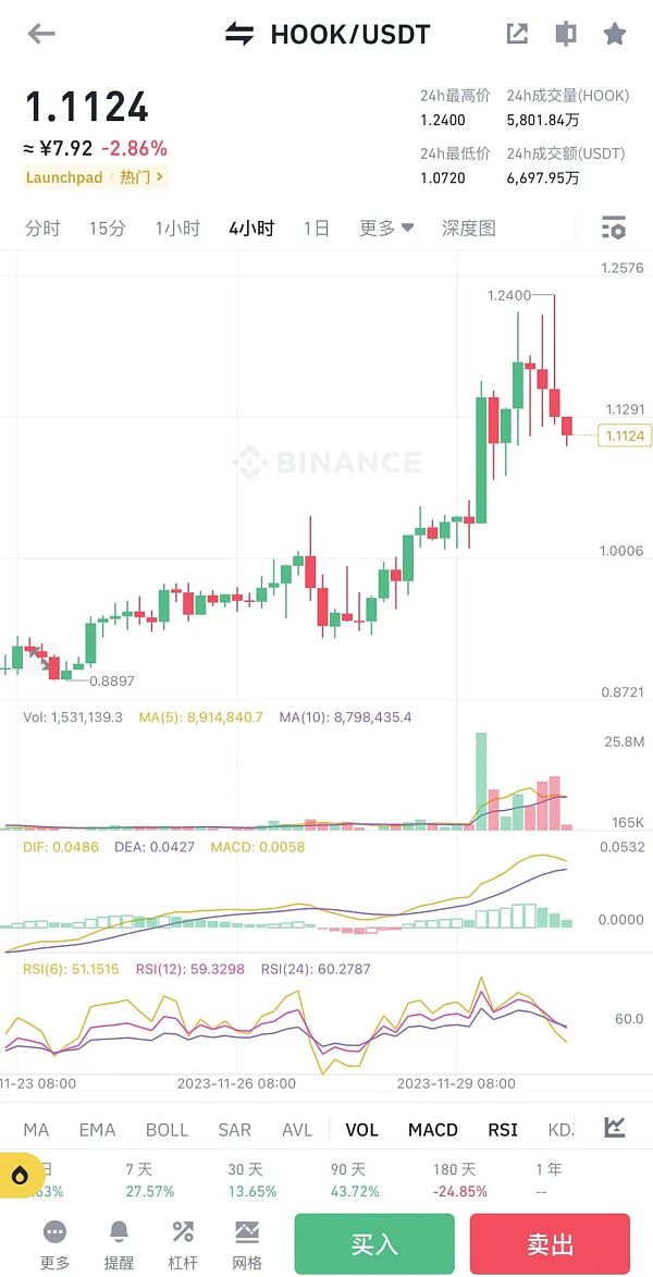 在代币价格方面,我们可以看到HOOK在上线币安之后,代币价格出现了先涨后跌的走势,这主要是早期获利盘出逃所导致的。但是代币价格也经过了10个月左右的盘整,主力基本完成了吸筹操作,交易量和价格也在近期由逐步放大的趋势,也就是有可能会在近期迎来一波拉升,初步可以看到1.5-2.0左右,如果官方继续加大激励和DApp应用场景的力度,讨论量热度增加,可进一步提升估值。