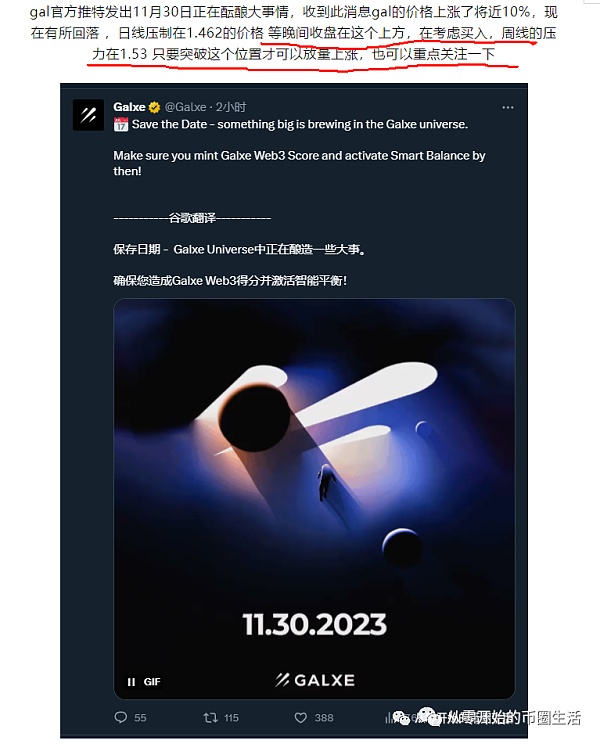 GAL 当时说的周线压力在1.53突破后会有放量上涨,GAL在昨天突破1.53后最高涨到了1.787涨幅有17% ,恭喜上车的小伙伴,今天宣布跟Mantle达成合作,大规模采用去中心化和代币管理的技术。通过 Mantle Network、Mantle Treasury 和代币持有者管理的产品计划,这种一般利好落地就变利空,尽可能的止盈自己的仓位。