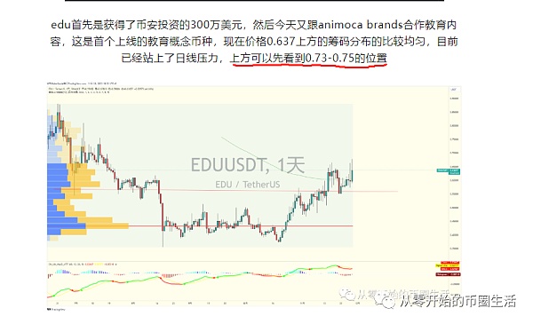 上一篇公众号上提到的EDU 0.637的时候让各位关注最高价格0.71的位置现在0.67 依然有7%的涨幅 上方的抛压还是很大的,各位持有的可以慢慢止盈,EDU最终目标可以看到0.83的位置。