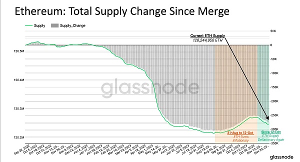 在最近的几周,由于发行速度下降和更大量的供应被销毁,总体 ETH 供应再次转为净通货紧缩。