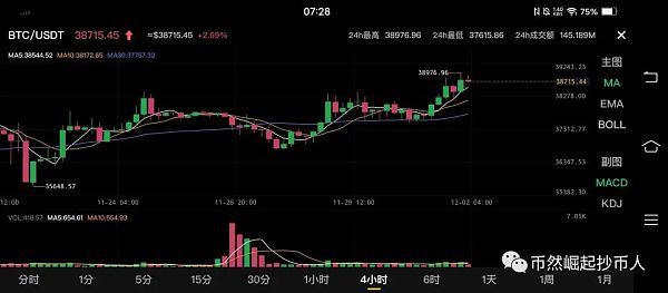 根据最新数据显示,比特币BTC的市价在38700附近左右。经过图表的分析,可以看出比特币4小时行情目前处于上轨附近震荡下行的状态。红色能量柱的持续震荡显示出币价的下行趋势,因此短期来看建议以高空为主。目前币价仍处于震荡回调运行,预计会有一波下跌趋势。在此情况下,个人操作建议是综合指标,建议在高位做空,但仅供参考。