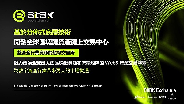 BitBK是由美国纳斯达克(NASDAQ)联合INBlockchain、DFUND、Hyperchain Capital联合矽谷极客顶尖技术团队发起并运营,基于分布式底层技术𫔭发全球区块链资产链上交易中心、致力成为全球最大的区块链资源和流量矩阵的Web3产业交易平台。