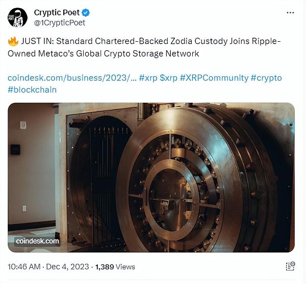 Zodia Custody 和渣打银行进入 Ripple 的 Metaco 加密网络