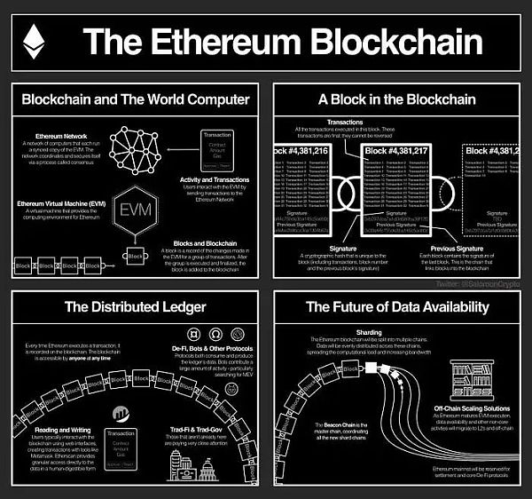 以太坊区块链通常被称为 Ether 或 ETH,是市值仅次于比特币的第二大加密货币。比特币主要充当数字黄金和价值储存手段,而以太坊则是一个多功能平台,主要致力于促进智能合约和去中心化应用程序 (DApp) 的开发和执行。?