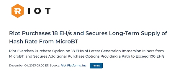 该订单中的所有矿机将在美国制造,专为浸入式冷却设计。Riot首席执行官Jason Les表示,这是公司历史上最大的算力订单,标志着Riot在加密挖矿领域的重大扩张和技术进步。