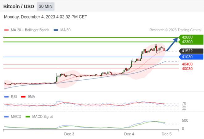 “我们的枢轴点位于41030,我们的偏好是,只要41030美元有支撑,就寻找42680美元。”