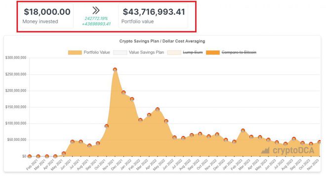 如果您从 2020 年 12 月至今每月虔诚地向柴犬投资 500 美元,那么您现在可能已经赚了 4300 万美元。是的,没错,从2020年12月到今天稳定投资500美元,就构成了36个月。这相当于过去 36 个月内 SHIB 的投资总额为 18,000 美元,经历了所有的起起落落。