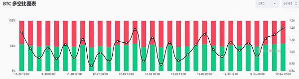 本周费率为正,市场情绪正常。市场在BTC费率在11月12日创下今年来最高费率后开始调整。费率0.05-0.1%,多头杠杆较多,是市场短期顶部;费率-0.1-0%,空头杠杆较多,是市场短期底部。本周BTC总持仓量小幅上涨,基本同步价格波动。期货多空比0.7。散户情绪偏空。散户情绪多为反向指标,0.7以下比较恐慌,2.0以上比较贪婪。