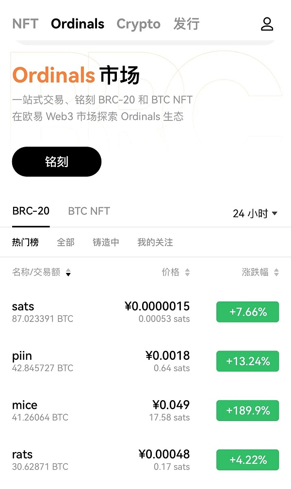 24小时内涨幅达31.8%,一周内涨幅高达117%:Ordi币在短时间内表现抢眼,24小时内涨幅达31.8%,一周内更是实现117%的大幅增长,引起市场广泛关注和投资热情。