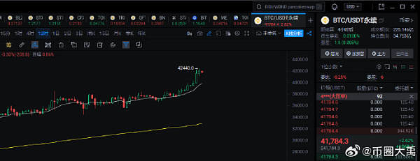 四小时:应当会在41000-42000这个位置盘整一周吧,山寨现货今天准备再分批离场一些。
