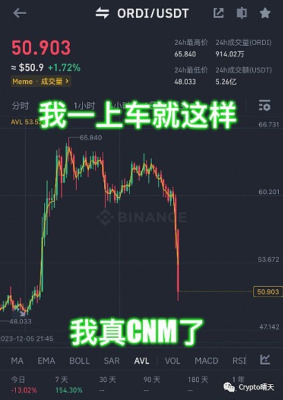先说结论,我认为这一波ORDI到顶了,后面需要调整一段时间。 这只是晴天的个人观点,不构成投资建议,大家信就信,不信就看个乐呵!