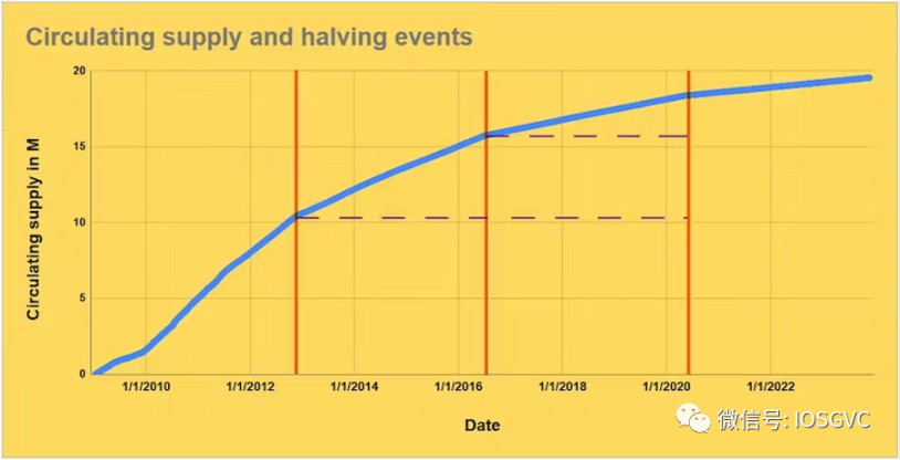 为了说明减半的影响,让我们来看看每次减半前后比特币的发行情况。在第一次减半之前,比特币的发行量超过了 1000 万枚。在第二次减半之前,比特币的发行量略高于 500 万枚,在第三次减半之前,比特币的发行量约为 250 万枚。