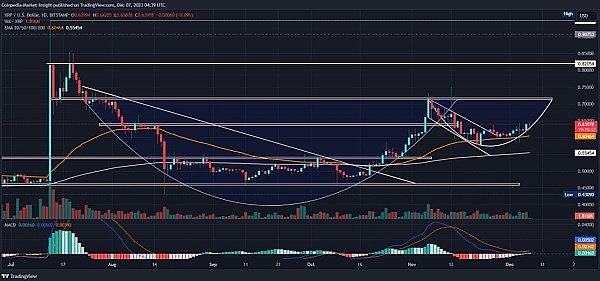 此外,Ripple 的复苏反弹预示着将继续突破颈线 0.71 美元。买家正在为杯柄反转做准备,这是一种趋势延续模式,将以巨大的势头提高 XRP 价格。