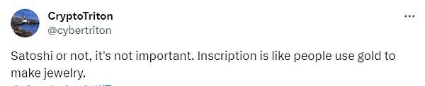 @CryptoTriton 则认为,铭文就像人们用黄金来制作珠宝一样。