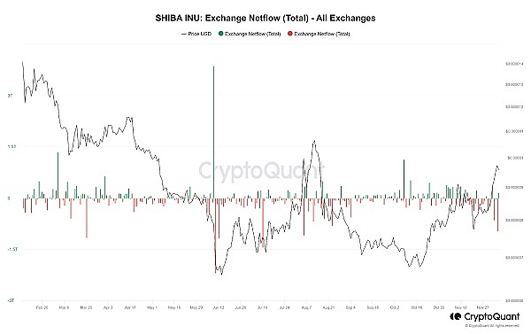 然而,最新的更新显示,交易所的净流量变为正,流入量约为1.63亿。值得注意的是,SHIB的流向也对价格走势产生了明显的影响。