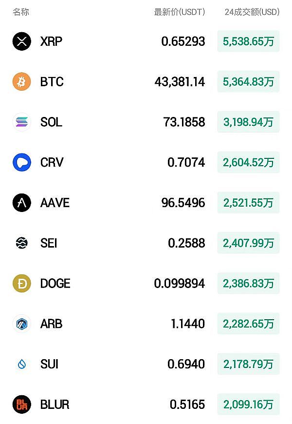 在主流币中,AVAX表现最佳,上涨10.37%,目前报价为36.38美元。整个加密货币市场的总市值为1.69万亿美元,较昨日下跌1.0%;全网24小时成交量为594亿美元,较昨日大幅收窄。