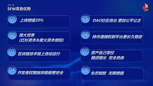 红杉资本和星火资本作为知名的投资机构,对StarFire Alliance Web3.0进行了战略投资,充分证明了他们对DEFI行业及该项目的高度认可。有了红杉资本和星火资本的支持,StarFire Alliance Web3.0将更有可能在区块链领域树立新的标杆。