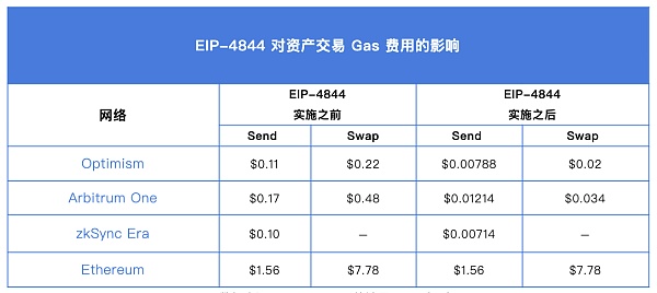 对于持有数字资产的区块链用户,以太坊「坎昆升级」将为数字资产交易带来的最直观的变化是:以太坊 Layer2 网络上的数字资产交易所需的 Gas 费用将显著降低,降幅或将达到 14 倍。