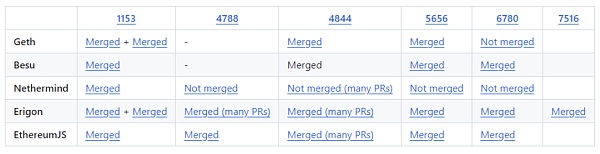△ 以太坊坎昆升级相关改进提案在客户端的实施进度(截至 2023/12/8)