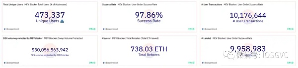 ·Revert protection。如果一个 Bundle 失败或者 Revert,Builder 将不会包含它(意味着用户不需要为交易支付 Gas)。通过把用户的一般交易作为 Bundle 发送,MEVBlocker 的 RPC 端点提供了这种保护。Blocknative 的数据显示,只有约 4.2% 的私人交易在链上 Revert,而约 13.8% 的公开交易 Revert。这凸显了 Revert protection 的好处。