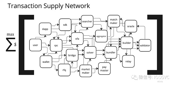 我在与人分享 Infra 的投资逻辑时经常会用到这张图片——通过 MEV 供应链(或者说交易生命周期)的视角来看不同的 Infra 项目是很有意思的一件事情。