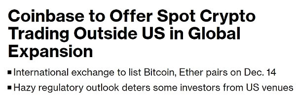 据彭博社报道,Coinbase Global Inc.正在其国际交易所推出现货加密货币交易,作为全球扩张的一部分,该公司表示,由于美国监管背景不确定,一些用户对美国交易场所持谨慎态度。