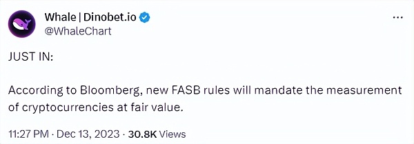 另外,美国将出台第一版加密数字货币会计制度,以捕捉代币的高位和低点。根据新版FASB制度,将按公允价衡量加密货币。