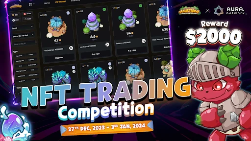 交易活动定于 2023 年 12 月 27 日至 2024 年 1 月 3 日举行,这也标志着为期 30 天的沉浸式游戏体验达到高潮。这一活动的战略设计不仅是为了结束为期一个月的航行,也是为了吸引游戏社区中的潜在 NFT 持有者。随着参与者在此期间参与交易活动,他们将有更多机会在 Aura Network 的动态生态系统中获得奖励。这个活动是一个关键里程碑,它促进了更多的参与和互动,同时为用户提供了一个探索 Monsterra 交易平台的机会。