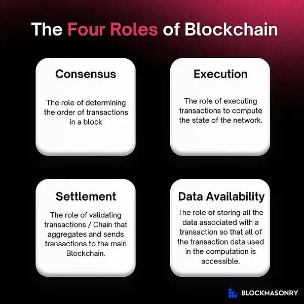 模块化区块链和单体区块链之间的区别取决于它们是在单个区块链上执行区块链的四个基本角色还是跨多个区块链执行。