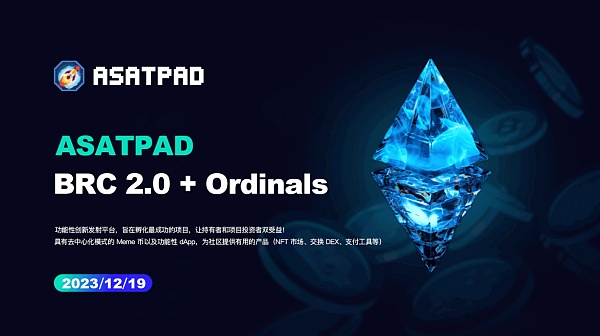 新的铭文捐赠平台 Asatpad 将于2023年12月19日上线正式上线!想象一个功能强大的发射台,其基石是最先进的BRC 2.0与Ordinals协议,Asatpad的出现就是为了成为这样一个平台:让项目持有者与投资人共同获得收益的双赢局面。通过推出功能多样的BRC20代币,充满个性的去中心化Meme币和多元化的功能性dApp,Asatpad致力于为社区成员提供实用且高质量的产品,如NFT交易市场、去中心化交易所(DEX)及便捷支付工具等。