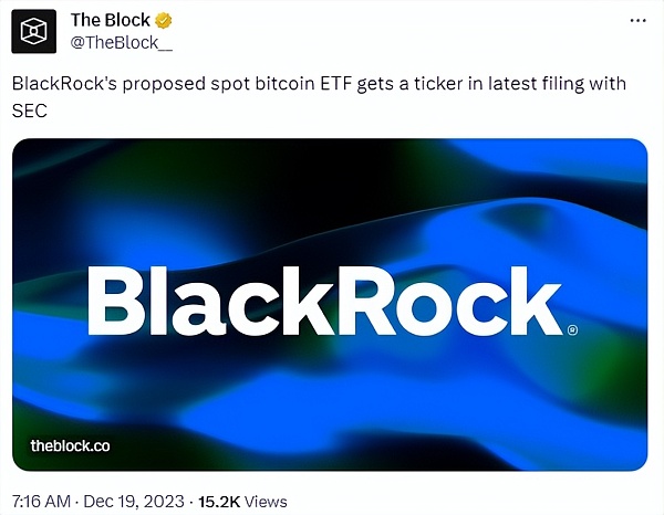 据The Block报道,根据周一提交给美国证监会修订后的S-1文件,贝莱德拟议的比特币现货ETF获得交易代码“IBIT”。更新的文件中还包含了关于现金赎回模式与实物赎回模式的新措辞,这也是贝莱德与美国证监会官员最近会面讨论的主题。