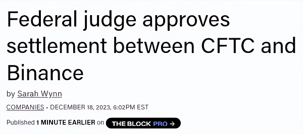 据The Block报道,美国伊利诺斯州北区地方法院法官Manish Shah批准了币安与商品期货交易委员会(CFTC)之间的和解协议。根据和解协议,赵长鹏必须向CFTC支付1.5亿美元,其中1/3将在未来30天内支付。此外,币安将向CFTC支付27亿美元。