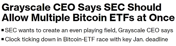 灰度首席执行官在Michael Sonnenshein受访时表示,美国证监会应该同时批准多个比特币现货ETF。如果监管机构不允许灰度比特币信托(GBTC)转换为现货ETF,但与此同时批准其他申请者的比特币现货ETF上市,那么GBTC的投资者将处于极其不利的地位。