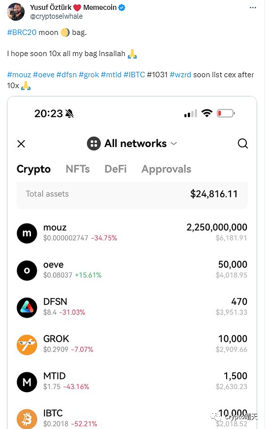 今天刷X,看到好多外国人(下图是50W粉丝的大V)开始拥抱Brc20,现在Brc20就需要越来越多新生XUE液入场。