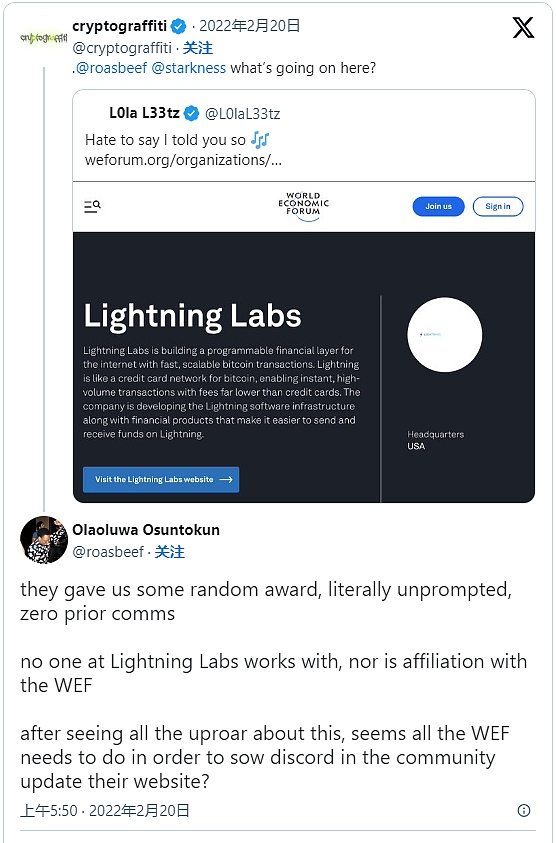 世界经济论坛曾将比特币闪电实验室放在其网站上,虽然闪电实验室与其没有任何关系,但有毒的至上主义暴徒仍然试图关掉闪电实验室,这很好的说明了比特币是如此容易被挑拨离间,有毒的至上主义可以成为针对比特币的武器。
