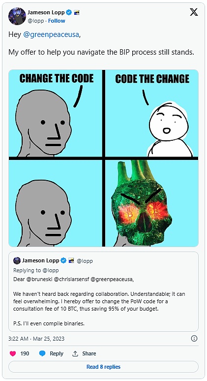由于融入的摩擦很大,加之外联工作不力,该群体仍然相当小众。尽管 Mircea 本人未能将他的影响范围扩大到 IRC 房间之外(他因对 Andreas Antonopoulos 进行死亡威胁而被禁止使用 Twitter),但他的一些行为被追随者在其他平台上模仿……