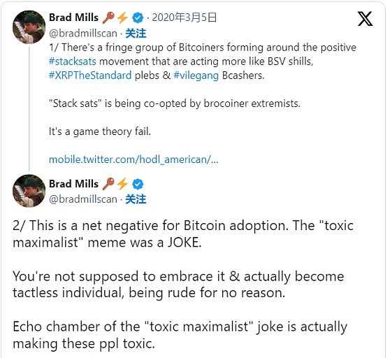 帽子生产商 Mow 在接下来的几年里出售了 10 多种款式;在 2019 年底,我们看到 Samson Mow 戴上了「有毒至上主义」的帽子,因为这个词被更频繁地使用——这是一种表明你属于哪个阵营的社交信号,只使用比特币还是使用多种代币。