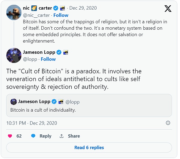 比特币至上主义者的信念是什么?比特币是最好的货币形式,没有其他项目能够获得相同属性,除此之外,没有其他固定的信念。比特币不可侵犯必须受到保护,这是最低共识,但以什么样的形式来保护还存在很大分歧。