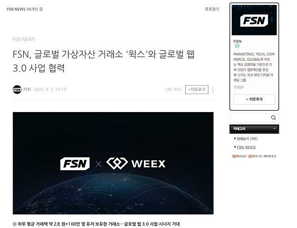 FSN 首席执行官 Lee Sang Seok表示,非常看好 WEEX 在加密货币交易领域的创新和成长能力,如果本次投资计划顺利完成,将与 FSN 现有 Web3 业务形成协同效应,实现公司在技术和全球方面的持续增长。