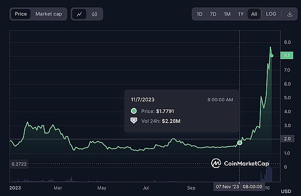 Helium 开发商 Nova Labs 的成功,让 $MOBILE 代币有了真正意义上的落地应用,对 $MOBILE 价格的上涨有一定的助推作用,再加上 Solana 的赋能与 DePIN 叙事等多重流量的加持下,$MOBILE 的价格在短短 7 日内暴涨 8 倍,成就了当前市场中为数不多的造福神话。