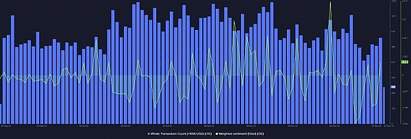 交易量下降可能是由于对该资产的悲观叙述造成的。12 月第一周后,加权情绪指标呈负值区域趋势。