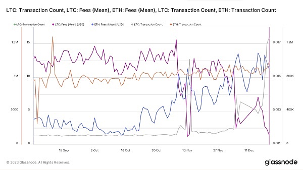 AMBCrypto 使用 Glassnode 在 12 月 19 日检测到莱特币上有 119 万笔交易,高于以太坊的 113 万笔交易。