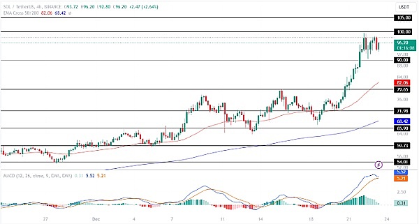 如果多头达到 100 美元的目标价格,SOL 价格将继续上涨,并准备在未来一周测试其上方阻力位 105 美元。
