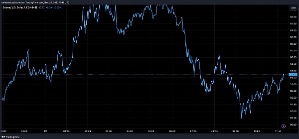 Solana 目前的交易价格为 91 美元,过去 7 天上涨了 17%,并有望再次突破 100 美元的价格水平。如果目前的价格增长速度继续下去,我们可能会看到 Solana 在 2024 年上半年重新回到目前的历史高点 259 美元。