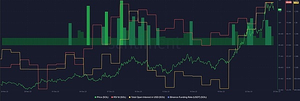 Solana 在过去一个月持续上涨后,于 12 月 24 日触及 21 个月高点 117.3 美元。值得注意的是,SOL 的价格在过去 30 天内上涨了 94%。