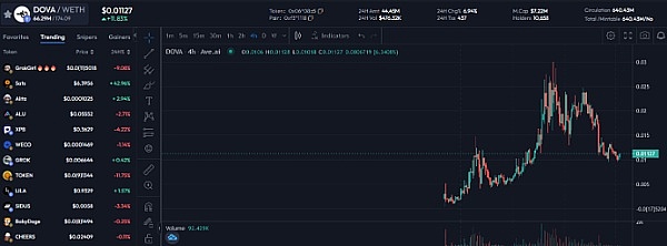 DOVA从开盘到最高点,已经是涨了20多倍,目前价格已经稳定在0.011,筑底走势已经出现,发展势头良好,等待后续上冲起飞!