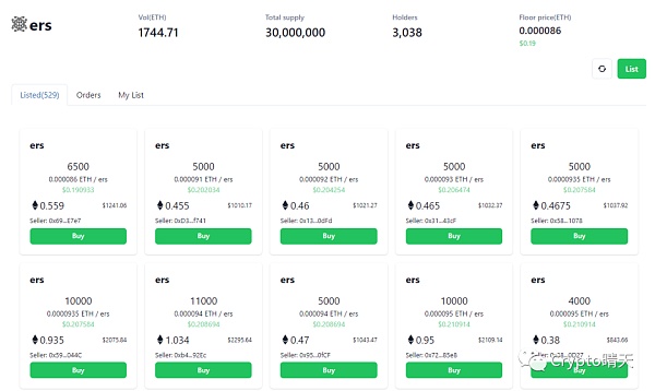 $ers市场链接:https://ethrunes.xyz/market/ers
