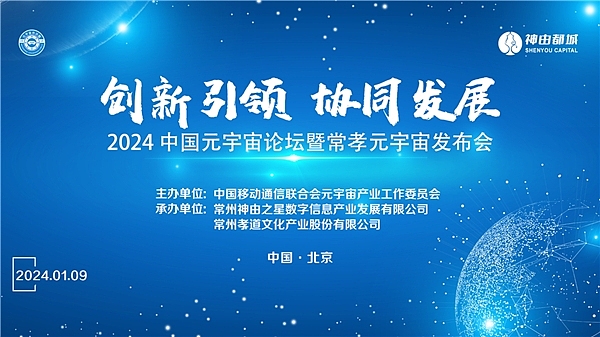 2024年1月9日,由中国移动通信联合会元宇宙产业工作委员会主办,常州神由之星数字信息产业发展有限公司、常州孝道文化产业股份有限公司共同承办的2024中国元宇宙论坛暨常孝元宇宙发布会即将在北京中国科技会堂举办,本次论坛以“创新引领、协同发展”为主题,旨在加快构建先进元宇宙技术和产业体系,培育新动能推动数字经济新发展。