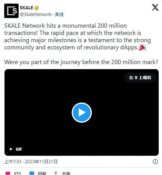 除了成功克服阻力位之外,SKALE网络今日还达成了一个重要的里程碑,成功处理了令人印象深刻的2亿笔交易。这一巨大的成就突显了该网络社区的实力,以及其革命性的去中心化应用程序(dApp)生态系统的强大性。